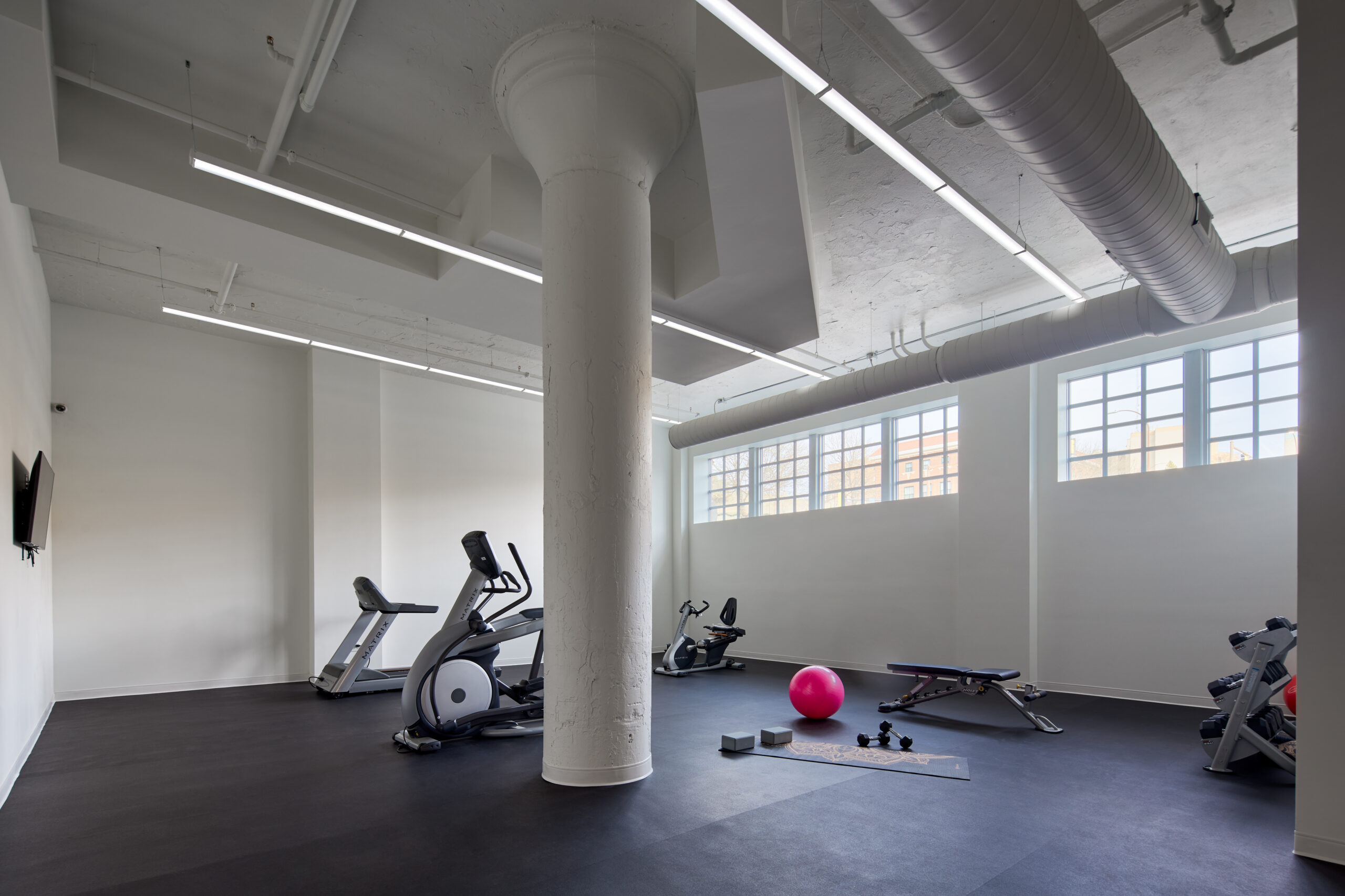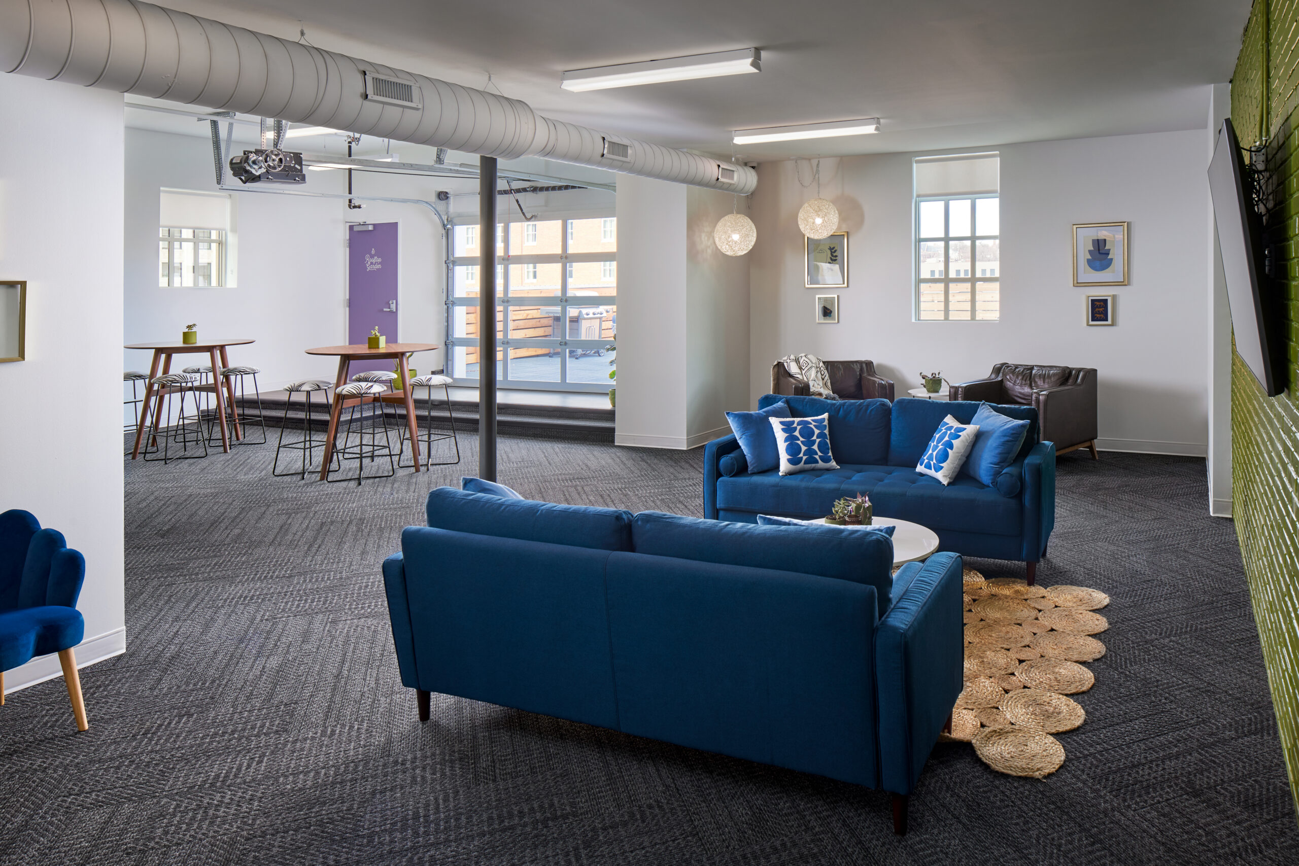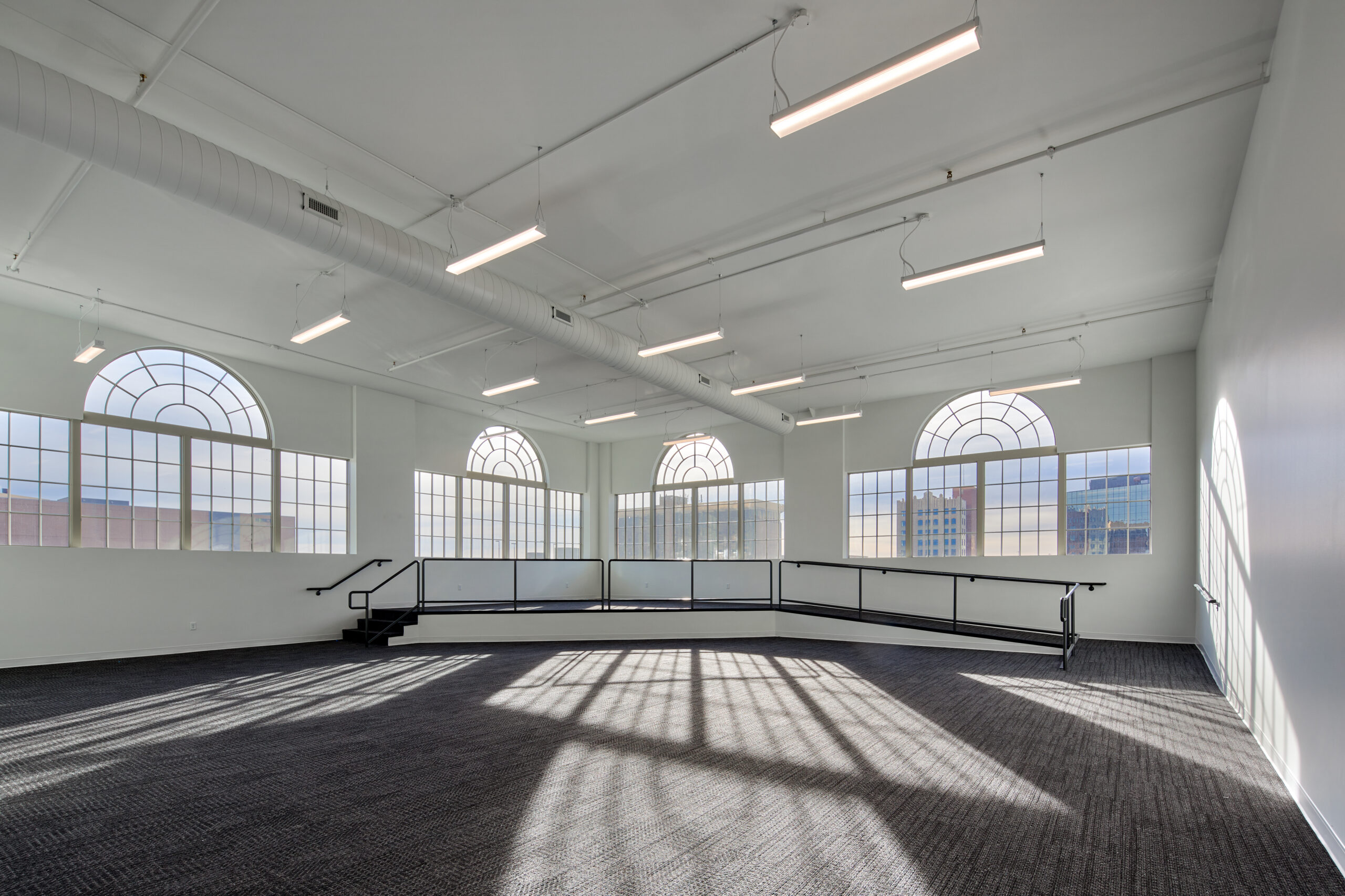 Inside, terrazzo flooring, elevator lobbies, and interior door casements were carefully restored to highlight the building’s original craftsmanship. The rooftop dance pavilion and subsequent additions received a new membrane roof that replicates the original concrete tiles, providing modern performance and watertight protection while maintaining historic character. Every element of this adaptive reuse project was designed to respect the building’s past while introducing contemporary systems for long-term functionality.