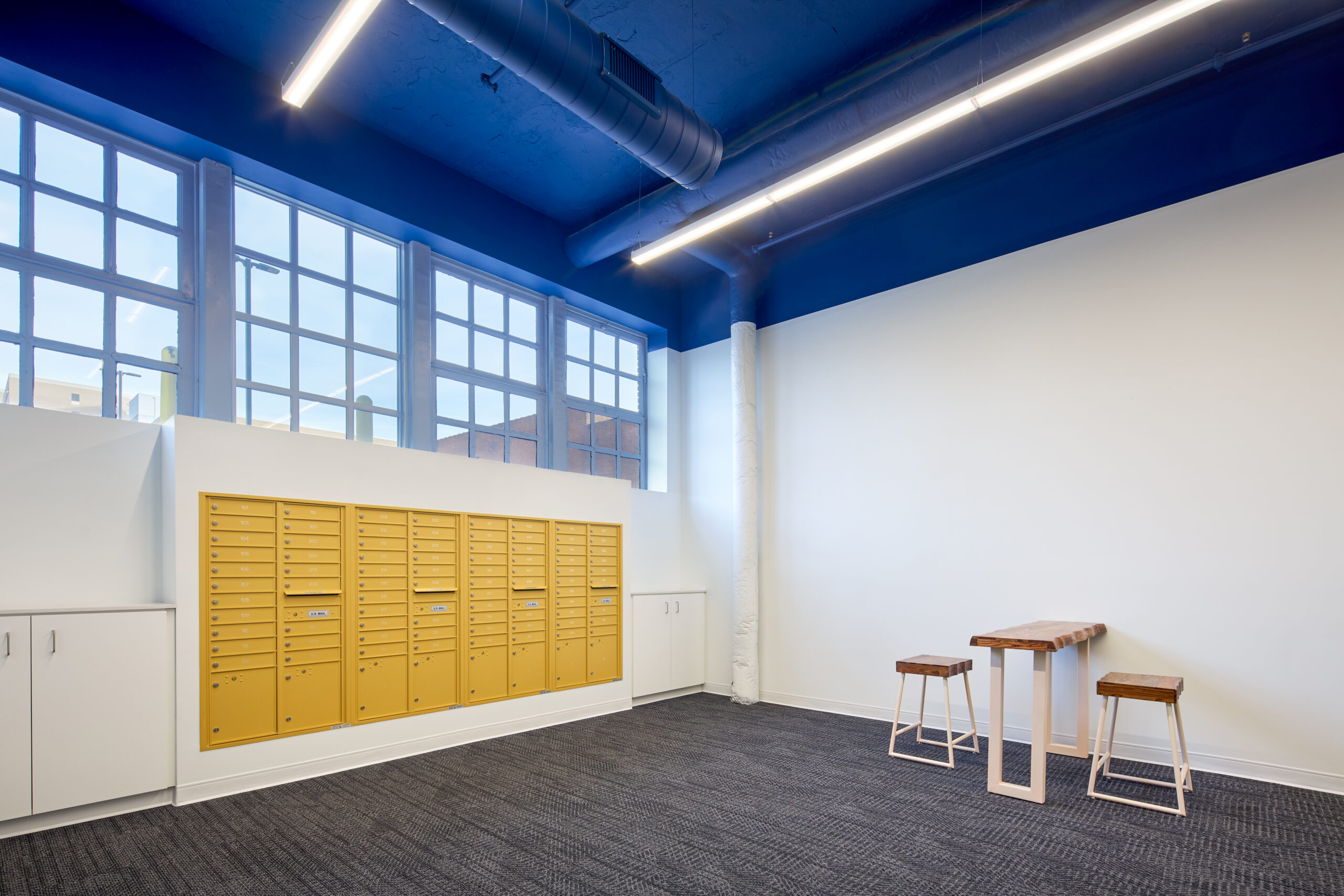 The Motor Mart, completed in 1912 as a four-story automobile dealership, is a landmark of downtown Sioux City’s architectural history. Over the decades, it evolved from an auto showroom to office and recreational use, including the addition of a rooftop dance pavilion in 1922 and later low-slope expansions. This historic renovation and adaptive reuse project transformed the building into the modern residential destination now known as Bluebird Flats, while preserving and celebrating its century-old architectural character. Stone Group Architects carefully balanced preservation, modernization, and adaptive reuse to address both the building’s complex history and the needs of contemporary urban living.