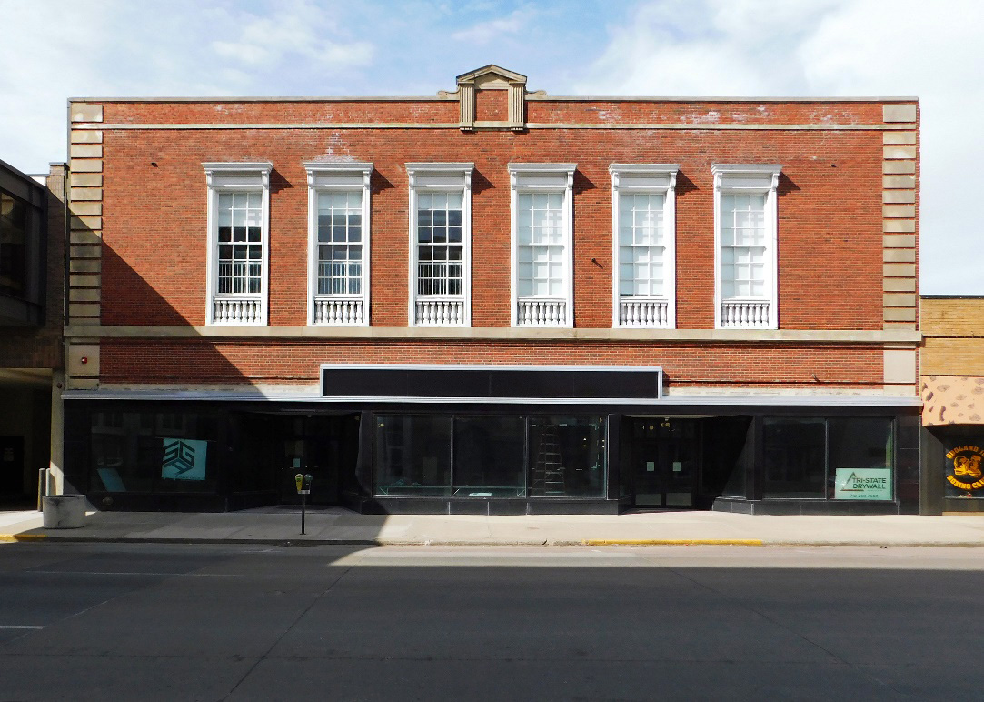 Built in 1934, the Hatch Montgomery Ward Building is a downtown Sioux City landmark, inspired by Colonial Revival architecture. The 42,000-square-foot structure originally featured two stories on the east half and three stories on the west half, serving as a Montgomery Ward department store until its closure in the 1970s. Subsequent tenants included an office supply company and a furniture retailer.